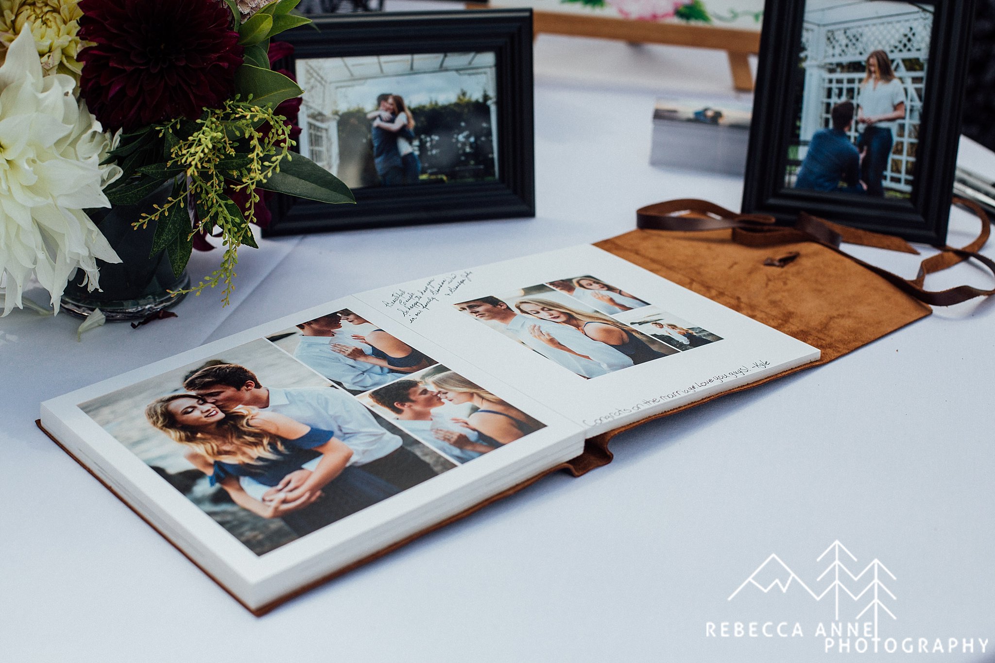 Creating a customized guest book is a great way to display your engagement photos. You can keep your guest book simple with just an image on the cover with blank pages for guests to sign or you can make it a little more personal. Some couples have included a few pages in the sign in book that lets their guests know how they met, fell in love and end up saying ‘I Do”.